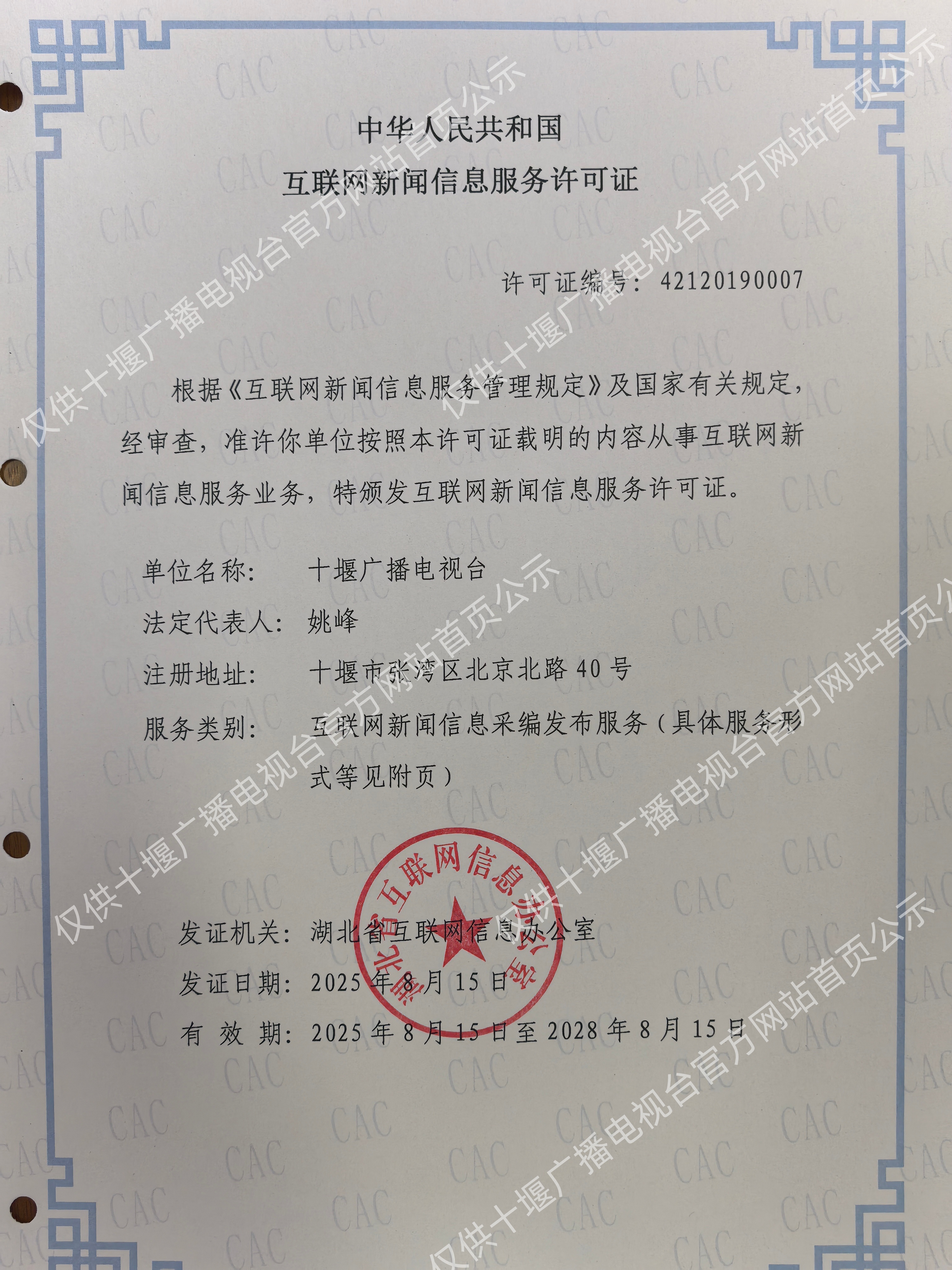 鄂新网备:420302 互联网新闻信息服务许可证编号: 42120190007 网络视听许可证117420059号  鄂ICP08004371号-1  鄂公网安备:42030302000124 十堰市扫黑办举报电话:0719-8622110 十堰市公安局举报电话:110